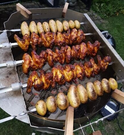 Später dann die Wings auf insgesamt drei Cheruskospießen aufspießen und ggf. nochmals nachwürzen.